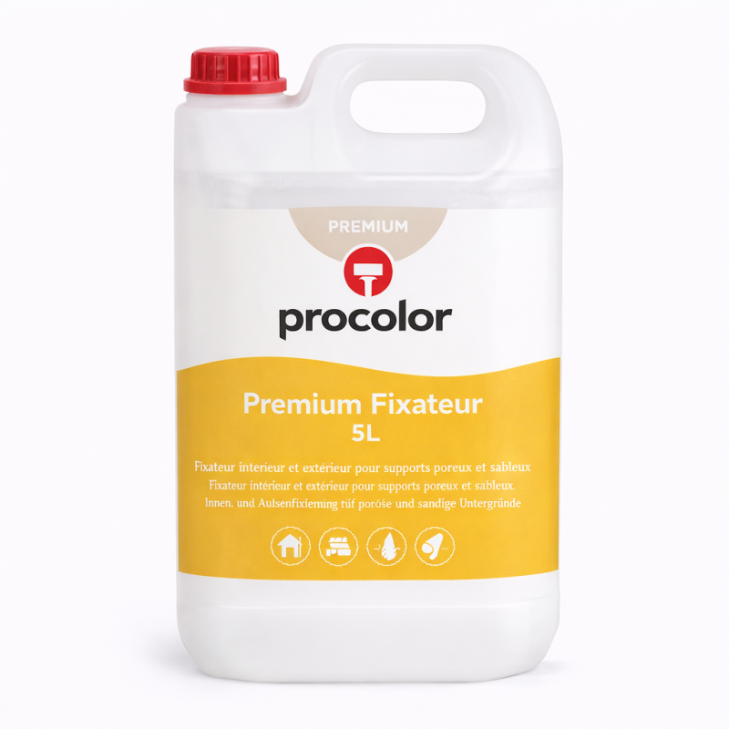 Watergedragen, transparant, fixeermiddel op basis van acrylaathars. Oplosmiddelvrij, reukarm en sneldrogend. Verbetert de hechting op de ondergrond. Voor binnen en buiten. Voor ondergronden die aan de oppervlakte poederend, poreus of sterk zuigend zijn.